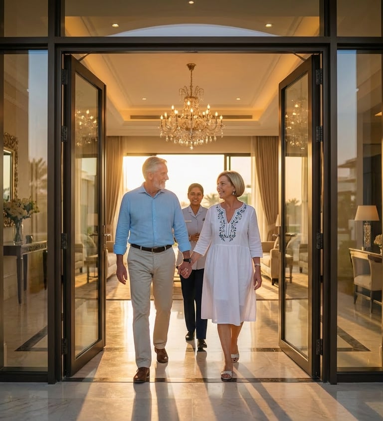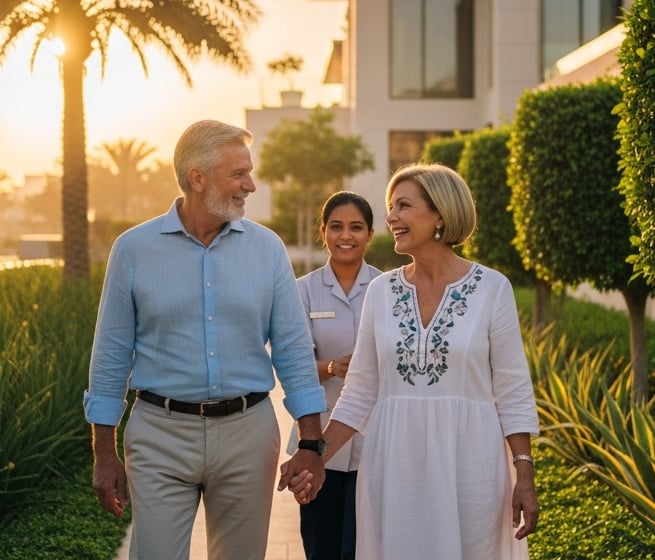 To create Dubai’s most comfortable, safe, and supportive assisted-living residence—where seniors can enjoy a meaningful lifestyle with continuous professional care and a true sense of belonging.